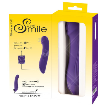 Il vibratore Thumping G-Spot di Sweet Smile è un vibratore flessibile con un'innovativa funzione di picchiettamento nella punta del punto G idealmente curvata e arrotondata con una struttura di stimolazione morbida. 2 motori forniscono 7 modalità di vibrazione e 3 modalità di battitura pulsante, che possono essere comodamente controllati separatamente al tocco di un pulsante sul giocattolo. Coperto con una struttura morbida al tatto tutto intorno, il vibratore fornisce una sensazione molto piacevole sulla pelle quando viene stimolato. Poiché è impermeabile, puoi anche giocarci sotto la doccia o nella vasca da bagno. Ricaricabile - include il cavo di ricarica Magnetic Charger.