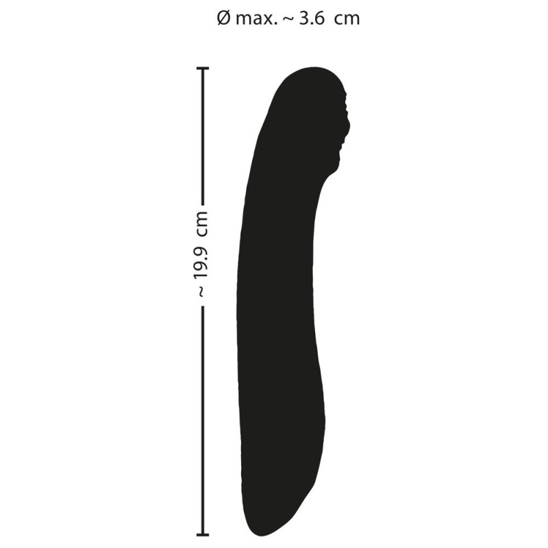 Lunghezza totale 19,9 cm, lunghezza d'inserimento 15 cm; Ø max. 3,6 cm. Peso 171 g. Silicone, PU, ABS.
