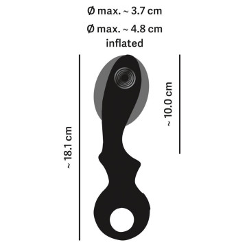 Specialista del punto di piacere gonfiabile! Il pratico vibratore gonfiabile ETERNAL per il punto G di You2Toys ha un aspetto elegante. La sua punta vibrante e ispessita può essere gonfiata ancora di più! In questo modo, la zona G vaginale viene perfettamente raggiunta e stimolata in modo mirato. Idealmente curvo, il vibratore rigido è perfetto anche per la stimolazione anale della prostata. Grazie alla sua texture morbida al tatto, è facile da inserire e scivola come se fosse da solo. 2 motori potenti e silenziosi forniscono 10 intense modalità di vibrazione nella punta rigonfia e la funzione di pompa automatica (con rilascio della pressione). Le funzioni possono essere comodamente controllate premendo un pulsante sulla pratica impugnatura ad anello - separatamente o in un'eccitante combinazione. L'anello antiscivolo garantisce inoltre una manipolazione anale sicura senza scivolare. Ricaricabile - cavo di ricarica USB incluso. Lunghezza totale 18,1 cm, lunghezza di inserimento 10 cm, Ø 1,8 cm - 3,7 cm, pompabile fino a un Ø massimo di 4,8 cm. Peso 110 g. Silicone, PU, ABS.