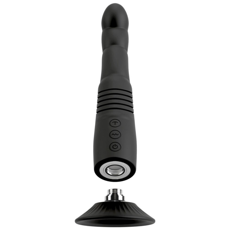 Grazie alla sua base aspirante, il vibratore a spinta è assolutamente sicuro per l'uso anale e non può scivolare all'interno. Inoltre, la base aspirante aderisce saldamente e in modo sicuro alle superfici lisce, per una corsa del vibratore a mani libere. Grazie alla sua base di aspirazione, il vibratore per la spinta può anche essere inserito rapidamente e facilmente in uno strap-on o in un'imbracatura. La base di aspirazione può anche essere svitata.