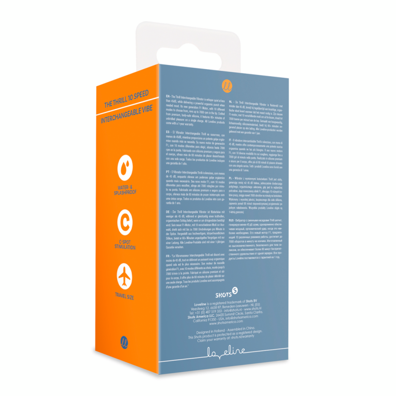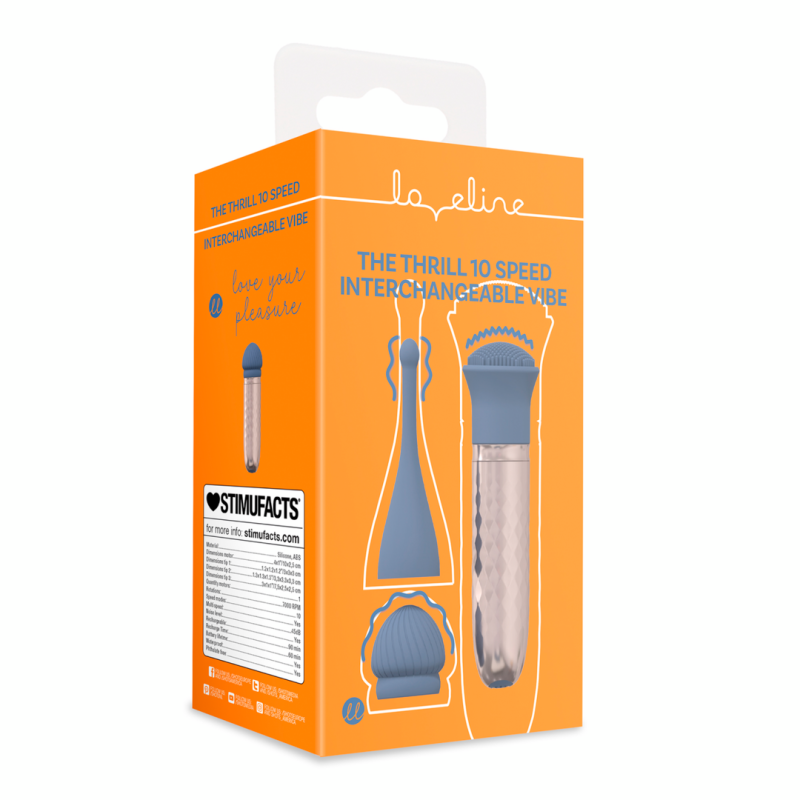 Il vibratore intercambiabile Thrill è silenzioso come un sussurro a meno di 45 dB, mentre offre un potente pugno orgasmico quando più ne hai bisogno. Il suo motore F1 di nuova generazione, con 10 diverse modalità tra cui scegliere, raggiunge i 7000 giri al minuto nella punta. Realizzato in silicone di alta qualità, sicuro per il corpo, offre oltre 60 minuti di piacere sfrenato con una singola carica. Tutti i prodotti Loveline sono dotati di una garanzia di 1 anno.