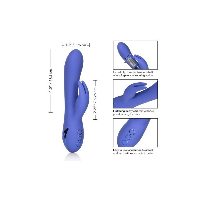 California Dreaming Beverly Hills Bunny Vibratore stile coniglio viola. Immergiti nelle pozze del piacere e delle fantasie baciate dal sole con l'elegante California Dreaming Beverly Hills Bunny. Il lussuoso massaggiatore vibrante ha 10 intense funzioni di vibrazione, 3 funzioni di rotazione dell'albero indipendenti e un teaser unico con un sensuale rompicapo per coniglietti per un'esperienza di piacere unica nel suo genere. Il corpo in silicone senza cuciture e il tremolante teaser del vibratore del clitoride emettono una stimolazione di scuotimento del ginocchio dentro e fuori dall'acqua. Se stai cercando di accendere il calore con un amante o semplicemente goderti un po 'di tempo da solista sensuale, questo incantevole coniglio è pronto. Mentre il contagocce del coniglietto sagomato sfarfallio e si muove con il tuo corpo, le 3 velocità di perle rotanti nel gambo offrono un eccitante massaggio del punto g. Controlla e personalizza il tuo piacere di gioco con le funzioni di rotazione dell'albero controllate indipendentemente e le funzioni di vibrazione del teaser. Ricarica il massaggiatore in 2,5 ore con il cavo di ricarica USB in dotazione per goderti 45 minuti di stimolazione ad alta velocità o 2,5 ore di vibrazioni a bassa velocità. Goditi il controllo senza frustrazione con il pad di controllo a 3 pulsanti easy touch e la funzione di blocco di sicurezza per la presa in giro pronta per il viaggio. Il corpo praticamente senza cuciture e la porta di ricarica autosigillante ti permettono di ottenere questo massaggiatore vibrante impermeabile e versatile per un tuffo. Il silicone premium ipoallergenico è sicuro per il corpo, inodore e privo di ftalati per mantenere i punti più sensibili, felici e in salute. Colore viola. Materiali in silicone, plastica ABS con placcatura metallica. Alimentazione USB Ricaricabile, inclusa. Dispone di ftalati, impermeabili, ricaricabili, vibranti. Garanzia 1 anno. Tempo di esecuzione massimo 150 minuti. Tempo massimo di ricarica 150 minuti. Misura 4,5 pollici da 1,5 pollici di albero. Stimolatore da 2,25 pollici per 1 pollice.