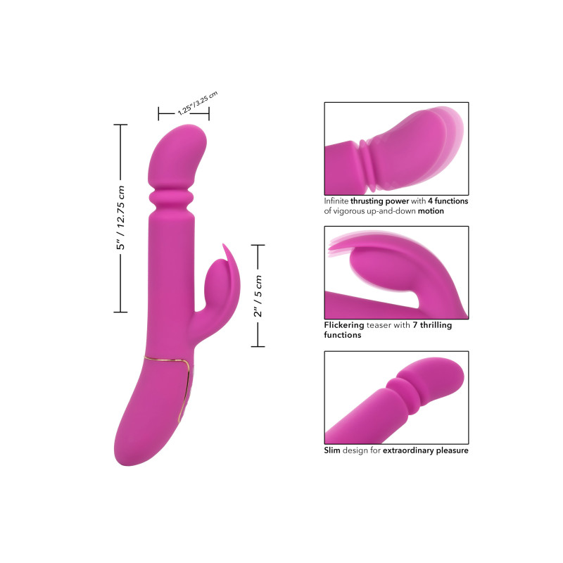 Il potere di una macchina del sesso nel palmo della tua mano - ora questo è Shameless! Questo massaggiatore di lusso è impenitentemente potente con fino a 850 spinte al minuto e uno stimolatore vibrante che lascerà a bocca aperta. Con un albero sexy e sottile; questa atmosfera sensazionale ha tutto. Non c'è vergogna in questo gioco! Sperimenta tutto il piacere intenso che desideri con questo lettore. È dotato di 4 funzioni di vigoroso movimento su e giù ed è realizzato con silicone sicuro per il corpo che è sorprendente sulla pelle. Questo propulsore è dotato di doppia stimolazione con 7 diverse funzioni tra cui scegliere. Il teaser lampeggia per colpire tutti i tuoi punti caldi. Inoltre, il propulsore e il vibratore sono controllati in modo indipendente, quindi puoi personalizzare il divertimento come preferisci. Materiale Silicone (massaggiatore) | ABS (pulsanti) | ABS con placcatura in oro (decorazione)