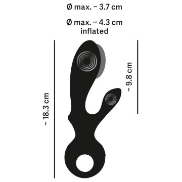 Coccole gonfiabili a tutto tondo! Pratico vibratore rabbit gonfiabile ETERNAL di You2Toys dal look elegante. La punta vibrante e ispessita dell'asta rigida può essere gonfiata ancora di più! Per una sensazione completa e una stimolazione vaginale intensa e profonda. Allo stesso tempo, anche il clitoride viene coccolato dalle vibrazioni dell'asta flessibile. Grazie alla sua texture morbida al tatto, il vibratore è facile da inserire e scivola come se fosse da solo. 3 motori potenti e silenziosi forniscono 10 intense modalità di vibrazione nella punta rigonfia e nello stimolatore clitorideo, oltre alla funzione di pompa automatica (con rilascio della pressione). Le funzioni possono essere comodamente controllate premendo un pulsante sulla pratica impugnatura ad anello - separatamente o in un'eccitante combinazione. Ricaricabile - cavo di ricarica USB incluso. Lunghezza totale 18,3 cm, lunghezza di inserimento 9,8 cm, Ø 1,8 cm - 3,7 cm, pompabile fino a un Ø massimo di 4,3 cm. Peso 126 g. Silicone, PU, ABS.