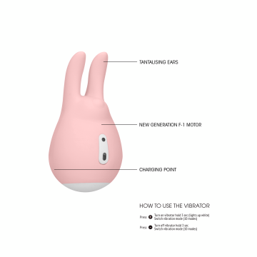 Le orecchie orgasmiche e sconvolgenti di questo mini massaggiatore clitorideo rabbit sono delicate ma dinamiche e rendono questo giocattolo clitorideo ideale per il gioco in solitaria o in coppia. Si adatta al palmo della mano e le 2 punte arrotondate di uguale forma vibrano attraverso i suoi 2 maestosi punti di vibrazione a ben 7.500 giri al minuto. Dispone di 10 funzioni di vibrazione uniche, è impermeabile, estremamente silenzioso a soli 60dB e contiene una batteria ricaricabile che può essere ricaricata completamente con il suo cavo USB in soli 120 minuti e fornirà ben 100 minuti di gioco appassionato! È realizzato al 100% in morbidissimo silicone per uso medico e contiene un fondo e un pulsante di accensione in ABS termoplastico privo di ftalati.
