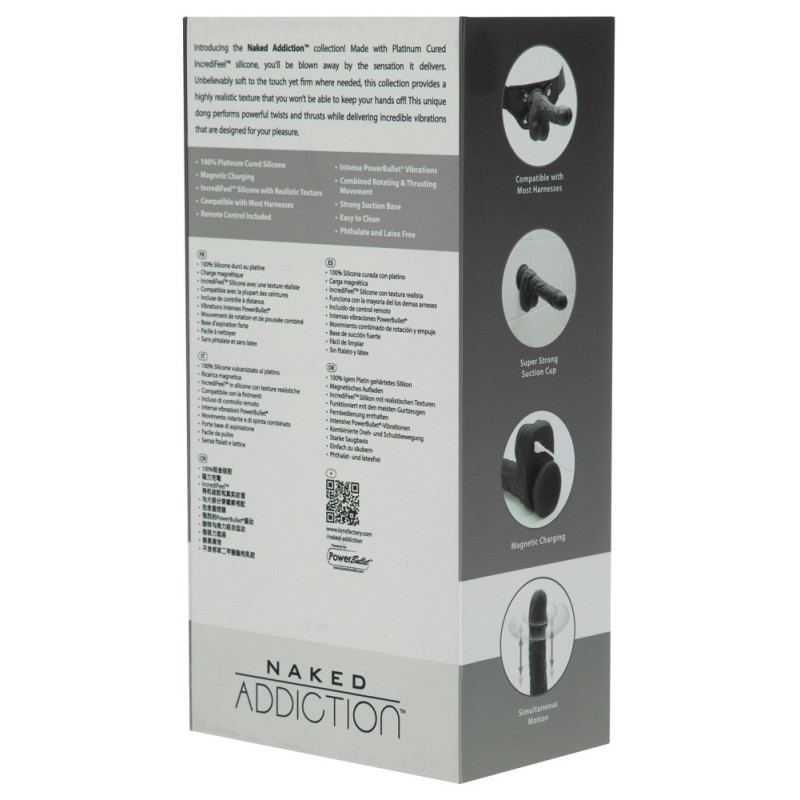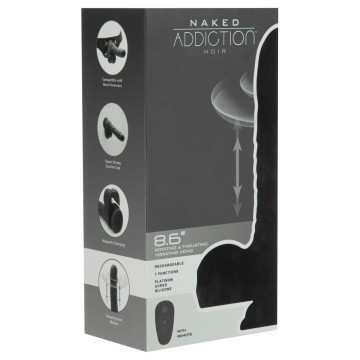 Vibratore flessibile a spinta 8,6" Rotating & Thrusting Vibrating Dong di Naked Addiction con punta rotante. Ha un aspetto realistico del pene, con venature sottili e un glande sporgente. Con una base di aspirazione sotto i testicoli antiscivolo, che aderisce saldamente e in modo sicuro a qualsiasi superficie liscia e consente quindi il piacere a mani libere. Il vibratore è compatibile anche con strap-on e orinatoi.