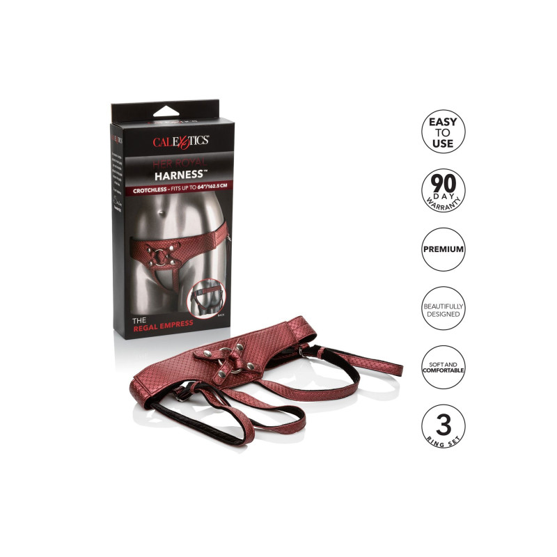 Preparati per il piacere indulgente e il gioco di sonde di alta qualità che si adatta davvero alla regalità con The Regal Queen. L'imbracatura di lusso della sua Royal Harness è fatta per una prestazione e un comfort con un design a forma di corsetto,con fodera interna morbida e cinturino regolabile. Il design audace con cavallo basso richiama anche i più dominanti con gli fatto per accogliere qualsiasi modello di fallo con ventosa di varie dimensioni. Prodotto in eco pelle di design. i dettagli in stile corsetto e la fodera in velluto felpato ti danno il massimo controllo sul comfort.