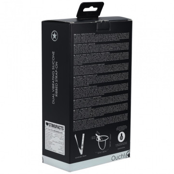 Vibratore indossabile doppio Dual Vibrating Silicone Ribbed Strap-On Adjustable Black