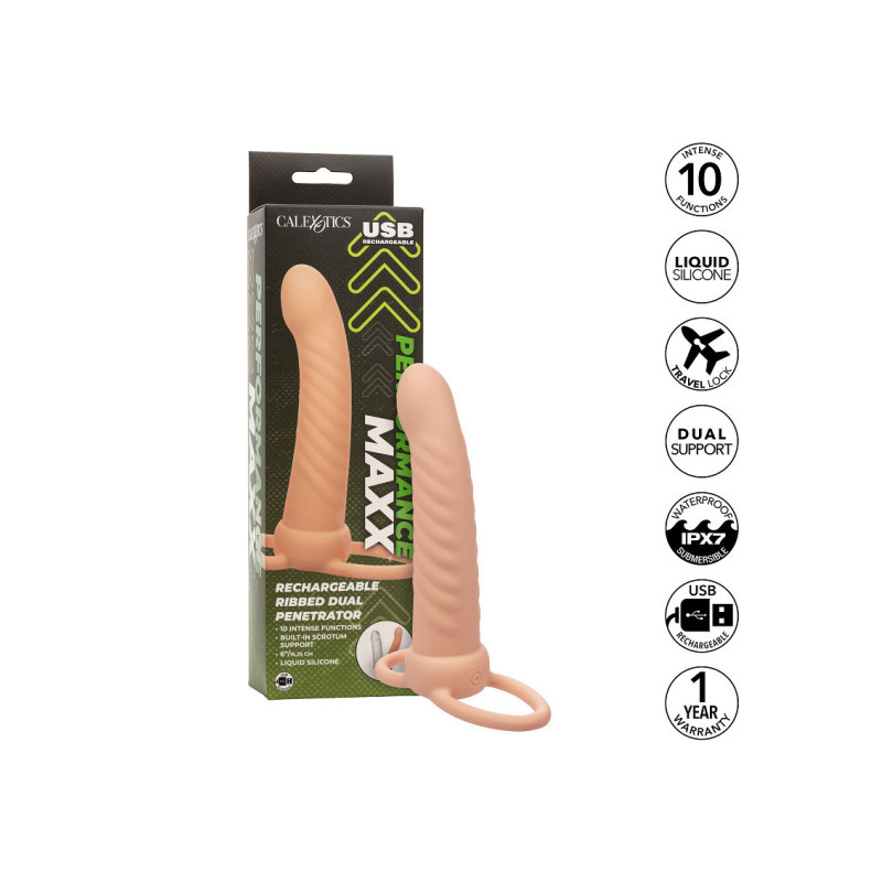Presentiamo il Performance Maxx Rechargeable Ribbed Dual Penetrator, una sonda versatile progettata per esperienze intense di doppia penetrazione. Con 10 funzioni di vibrazione, pulsazione ed escalation, offre avventure personalizzate, dalle tenere carezze alle potenti onde di piacere. La sua texture a coste intensifica le sensazioni, mentre la realizzazione in Silicone Liquido garantisce morbidezza e durata. Impermeabile con valutazione IPX7, è pronto per l'esplorazione in diversi contesti. Dotato di anello scrotale integrato, chip di memoria e funzione di blocco viaggio, assicura un godimento senza interruzioni e sicuro. Ricaricabile tramite USB, offre 60 minuti di piacere ad alta intensità o 90 minuti con impostazione più bassa dopo soli 1,5 ore di ricarica. Libera la tua curiosità con il Performance Maxx Rechargeable Ribbed Dual Penetrator.