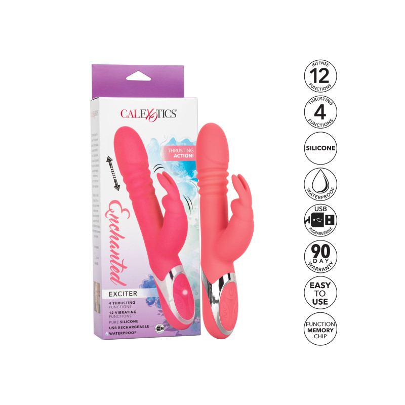 Porta un po' di magia nella tua camera da letto con Enchanted Exciter. Trasportati in un paese delle meraviglie del piacere con 4 funzioni di rotazione dell'albero, 4 funzioni di azione di spinta e 12 funzioni di vibrazione indulgenti. L'asta flessibile e il tremolante coniglietto tickler si flettono e si muovono con il tuo corpo per fornire un'intensa stimolazione del punto G e del clitoride. Il corpo in silicone senza cuciture e la porta di ricarica autorigenerante consentono una potente stimolazione dentro e fuori dall'acqua. Ricarica il massaggiatore in silicone premium in 120 minuti con il cavo di ricarica USB in dotazione per goderti 50 minuti di stimolazione ad alta velocità o 65 minuti di vibrazioni a bassa velocità. Mentre la pulsantiera a sfioramento controlla l'intensità e l'atmosfera sinuosa ti dà la stimolazione che desideri, il chip di memoria integrato all'avanguardia ricorda esattamente come ti piace avviando l'ultima funzione utilizzata. Il silicone premium ipoallergenico è sicuro per il corpo, inodore e privo di ftalati per mantenerti i punti più sensibili, felici e in salute.