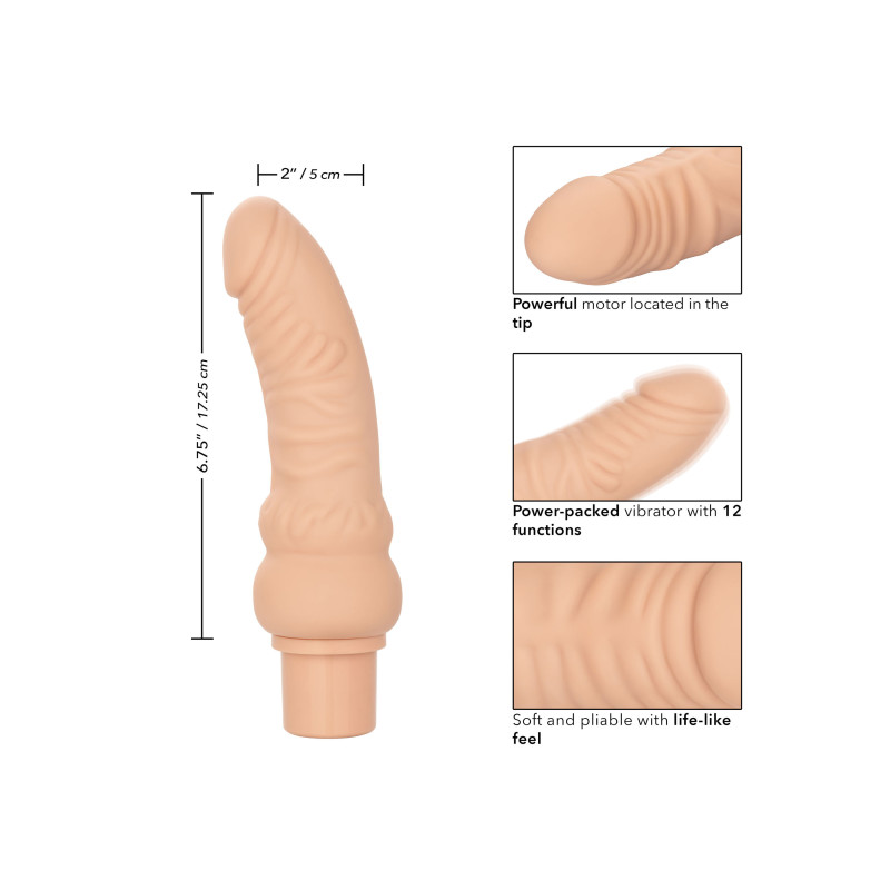 Spingetevi verso un piacere sconvolgente con il vibratore Power Stud Curvy ricaricabile. Questo vibratore potente è dotato di un design flessibile e reale e di 12 funzioni di vibrazione.