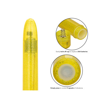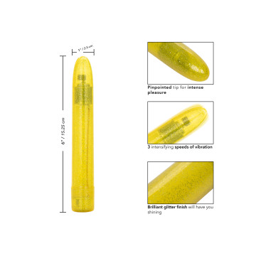 Che si tratti di un'immersione con l'amante o di una vaporosa sessione in solitaria, con questo vibratore vi attendono avventure seducenti. Immergetevi nell'estasi totale mentre questo vibratore orgasmico strofina, solletica e stuzzica. Il vibratore è realizzato in plastica ABS liscia con finitura scintillante e pulsante in silicone. Alimenta il piacere con 2 batterie AA.