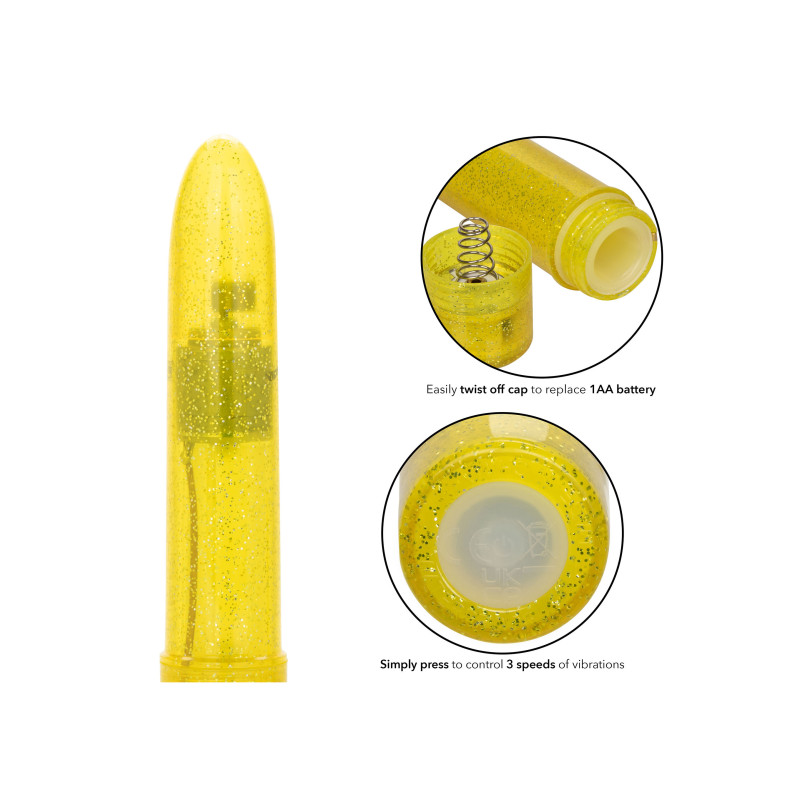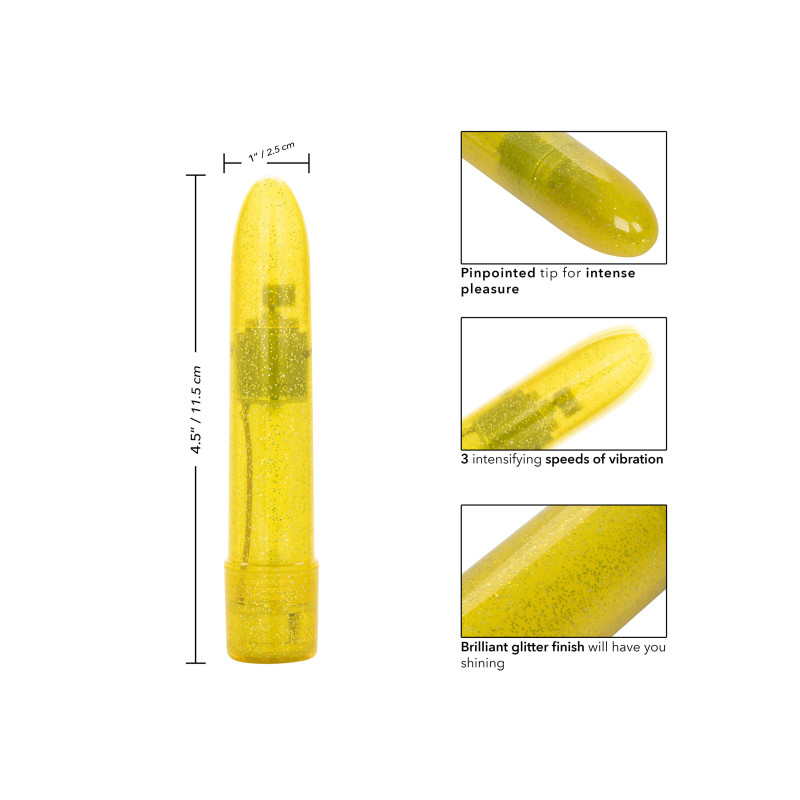 Che si tratti di un'immersione con l'amante o di una vaporosa sessione in solitaria, con questo vibratore vi attendono avventure seducenti. Immergetevi nell'estasi totale mentre questo vibratore orgasmico strofina, solletica e stuzzica. Il vibratore è realizzato in plastica ABS liscia con finitura scintillante e pulsante in silicone. Il piacere è alimentato da una singola batteria AA.