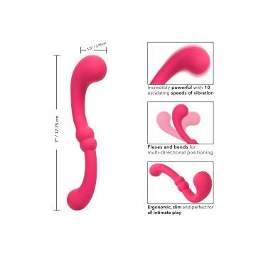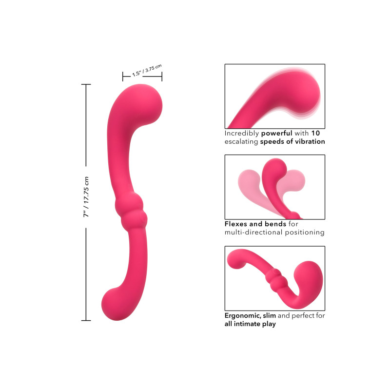 Assecondate il vostro lato magico e lanciate un incantesimo di piacere infinito con Pretty Little Wands Curvy. Spingetevi verso nuove vette di piacere con l'esclusivo massaggiatore sottile completo di 10 velocità di vibrazione, un corpo flessibile multidirezionale e un design indulgente a doppia estremità. Sicuro di colpire il punto giusto, il massaggiatore flessibile ha un posizionamento multidirezionale per flettersi e piegarsi nella posizione perfetta. Perdetevi nel piacere da soli o con un partner grazie all'accattivante design a doppia estremità. Aumentate l'intensità con 10 velocit
