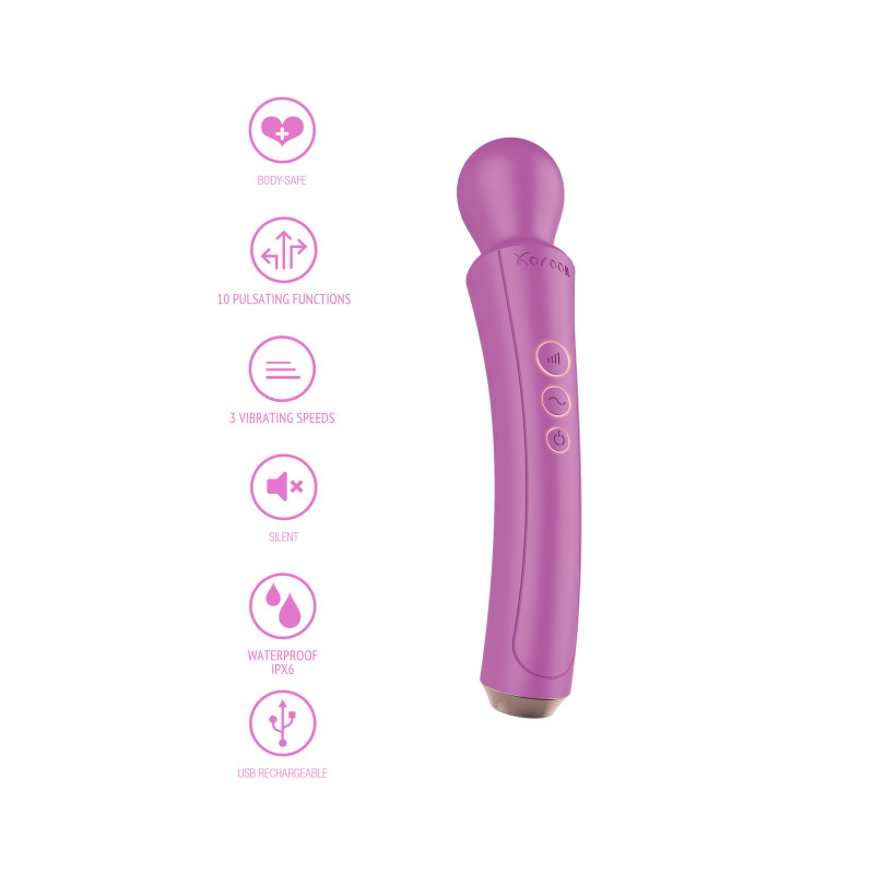 Incontra il tuo nuovo migliore amico: la bacchetta curva di XOCOON. Questa bacchetta massaggiante ricaricabile ha una spettacolare vibrazione forte, profonda e rimbombante, ma quasi senza vibrazioni nell'impugnatura per il massimo comfort. Scegli tra 3 diverse velocità e 10 modelli di vibrazione e goditi un ottimo massaggio su tutto il corpo.