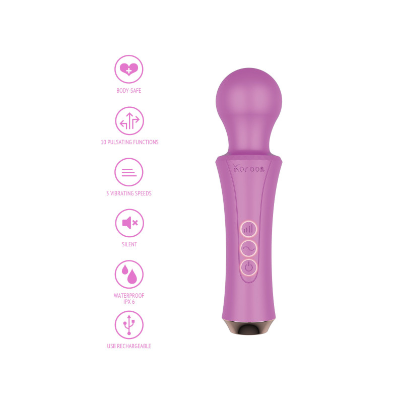 Incontra il tuo nuovo migliore amico: la bacchetta personale di XOCOON. Questa bacchetta massaggiante ricaricabile ha una spettacolare vibrazione forte, profonda e rimbombante, ma quasi senza vibrazioni nell'impugnatura per il massimo comfort. Scegli tra 3 diverse velocità e 10 modelli di vibrazione e goditi un ottimo massaggio su tutto il corpo.